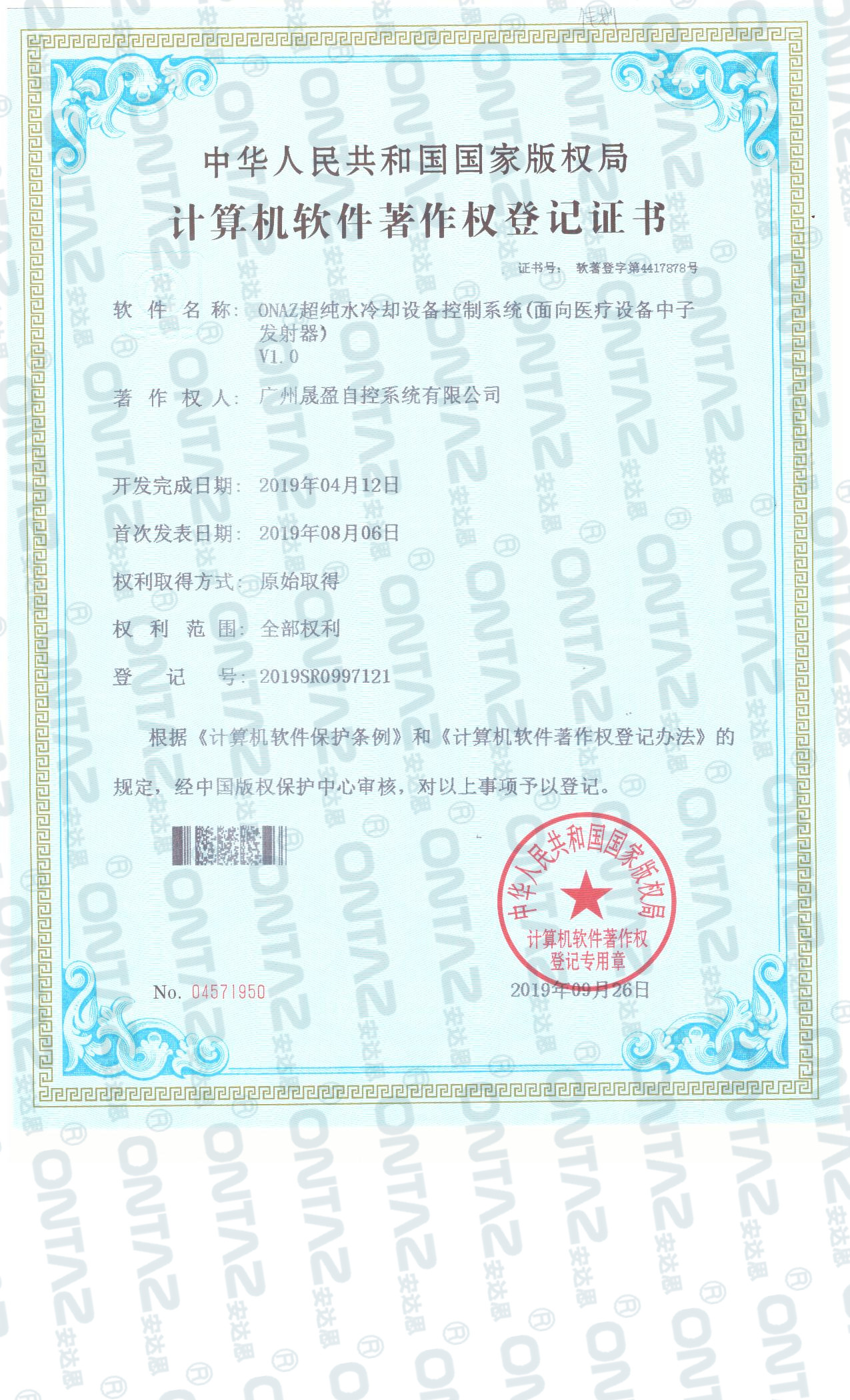 醫(yī)用純水冷卻系統(tǒng)資質(zhì)證明: